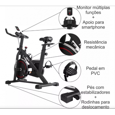 Title page > Sports and recreation > Sports and recreation > Ergometric Bicycle for Mechanical Spinning 6kg Odin Fit Black and Red Color