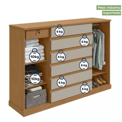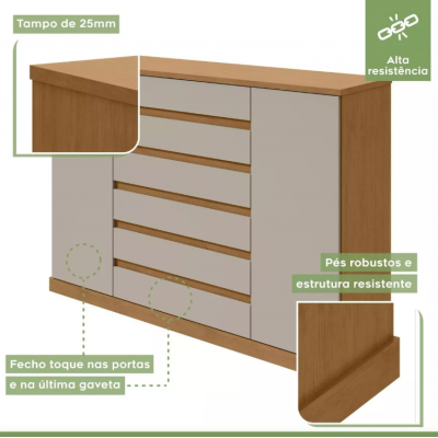 Dresser Vedra offers luxury and organization with 2 doors and 7 spacious drawers. Its refined design and premium finish stand out, providing elegance and functionality to your space. Choose the dresser was for a complete and sophisticated storage solution.