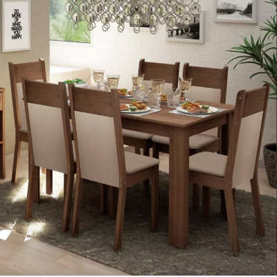Title page > Furniture > Furniture > Dining Room Madesa Jaíne Table Wooden Top 6 Chairs Rustic Crema Pearl 044905ZXTPER