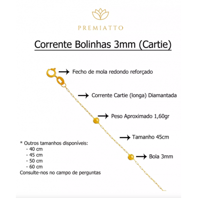 Current made of 18kl gold, the Cartie with balls is pure charm! It has a delicate design and an intense shine, accentuated by the balls that reflect the shine. Cartie current is that type of versatile current ideal for any type of occasion, and can be combined with various types of pendants or even other necklaces, being an ideal piece for those seeking elegance and sophistication.