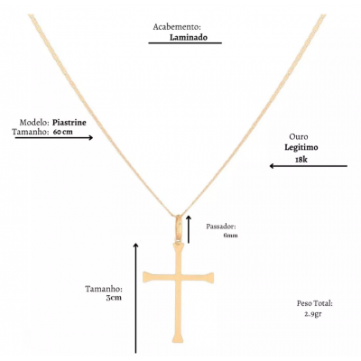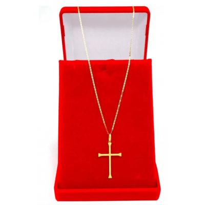 60cm Male Pastrine Gold 18k and Pingente Cruz