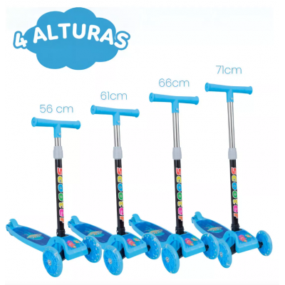 With 3 wheels LED lights, it stands out in any environment, besides being practical and functional, with a rear brake for greater control. Ideal for children from 3 years old, this scooter is perfect for outdoor walks and games.