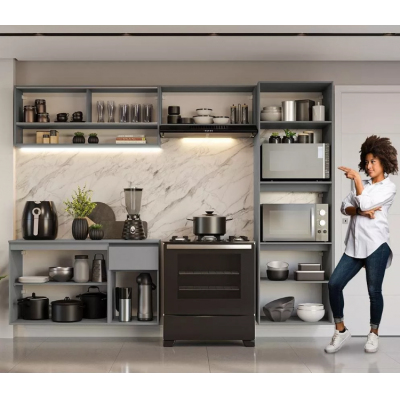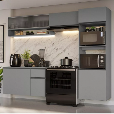 A furniture that unites perfectly practicality and modernity. Get to know all the details of the full kitchen cabinet of the Nice da Madesa line.