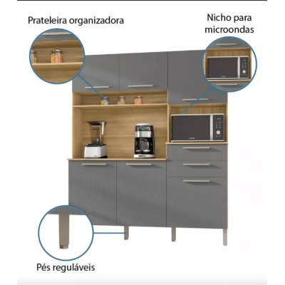 Montesa Full Kitchen Cabinet 6 Doors 2 Freijó Drawers and Graphite Kit's Paraná-Purchase 2 items