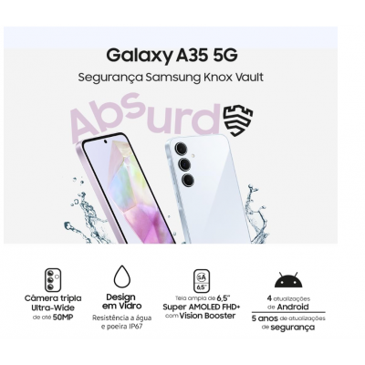 Title page > Samsung Galaxy A35 5g, up to 50mp rear triple camera, 13MP selfie, Nightography,