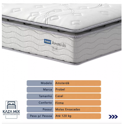 Box Bed and Mattress Amsterdam Spring Spring Casal Probel Color White-Purchase 2 items