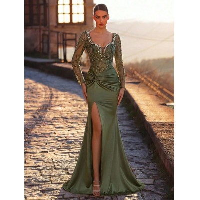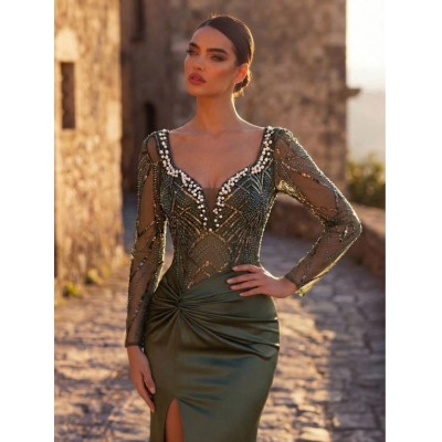 Title page > Aureia Elegant Luxurious Beaded Bubble Sleeve Lace Sheer Splice Knit Swimsuit With Twist Ruched Sexy