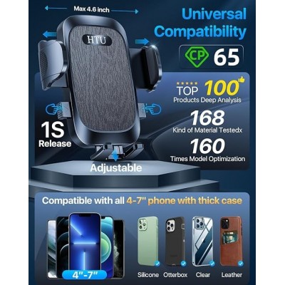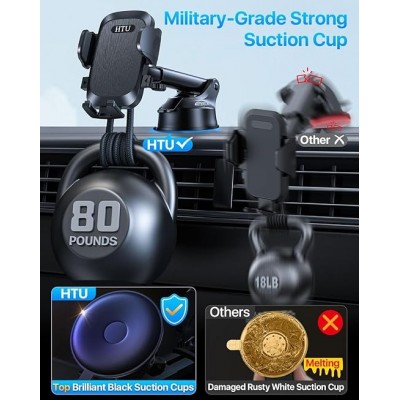 • [Visão desobstruída] O suporte de telefone de carro atualizado Htu tem a junta esférica de 360 graus e o braço telescópico ajustável, para que o celular seja fácil de alcançar, navegação conveniente, atender chamadas. Não bloqueia sua visão enquanto dirige. Você pode se concentrar em dirigir, e o suporte de celular Htu fará o resto para você.